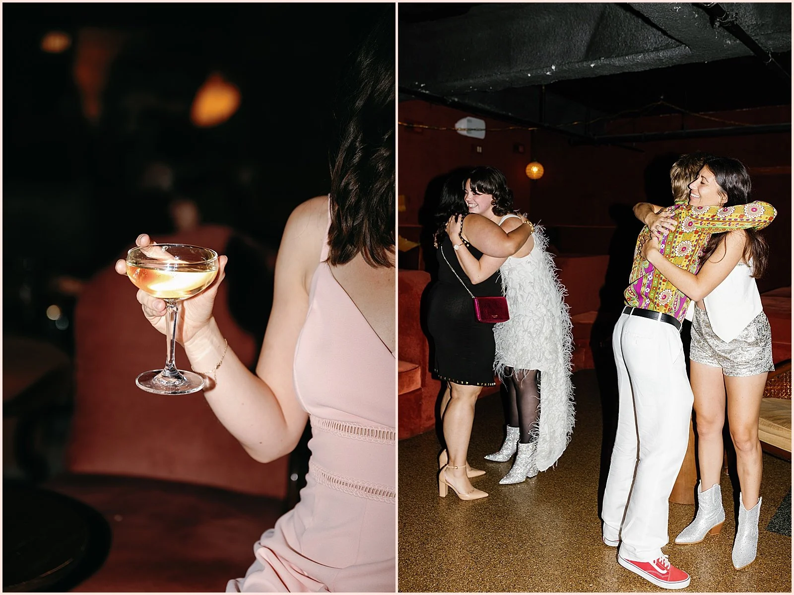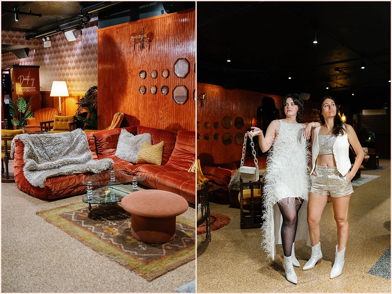 I love Dorothy Downstairs for a disco-themed wedding because its decor is so on point. The whole place feels like a 1970s speakeasy with warm oranges, reds, and greens. Plush fabrics cover the furniture and provide inviting spaces for conversations.